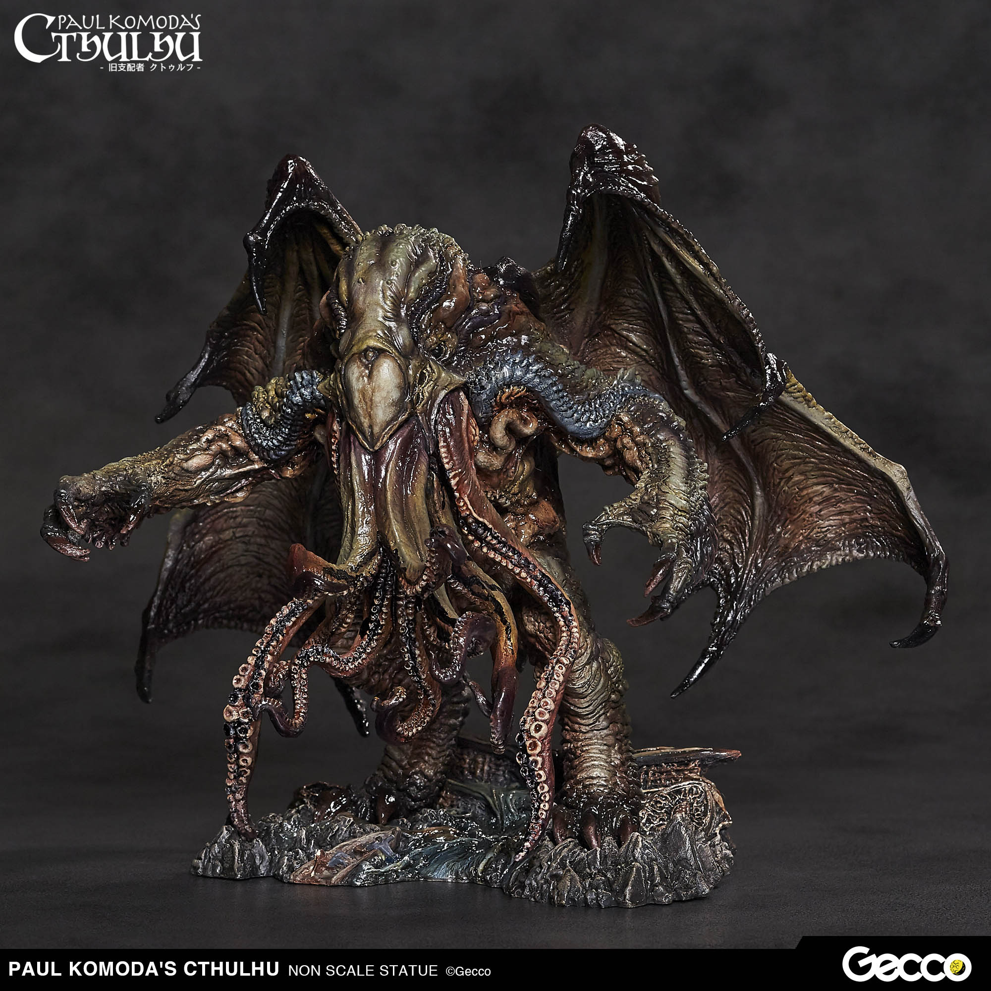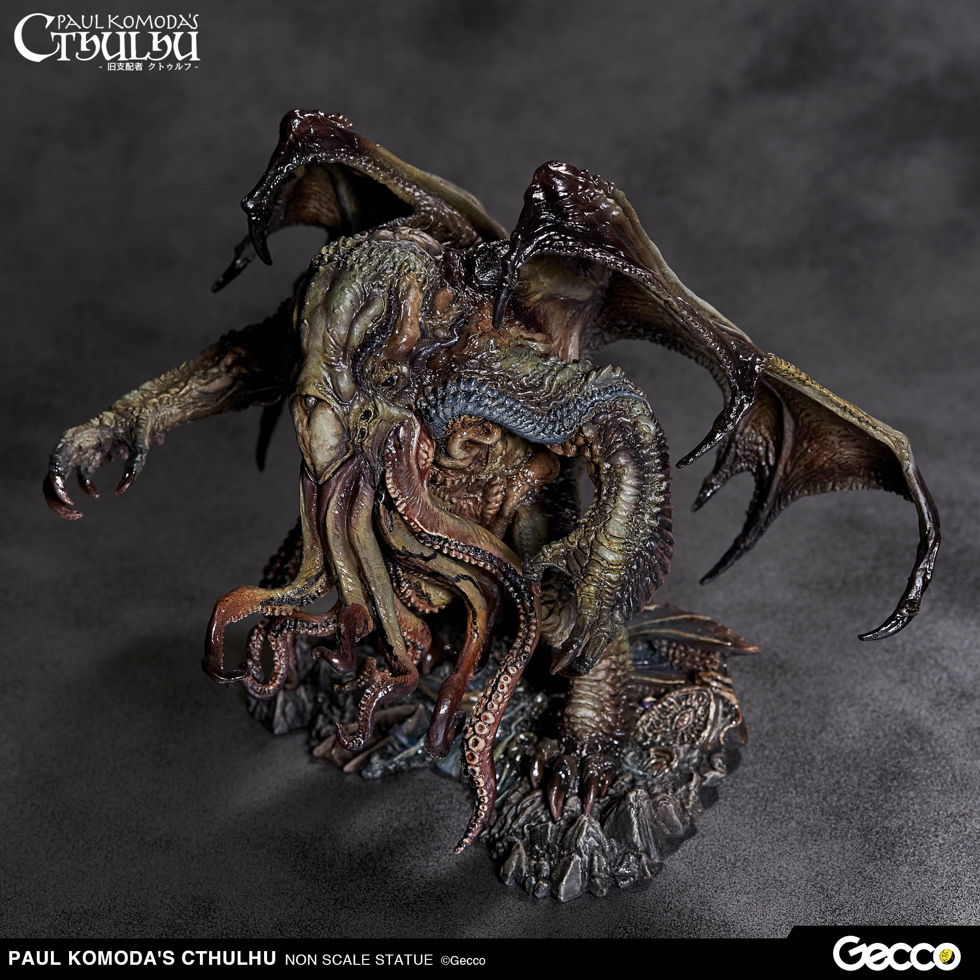 La antigua deidad «Cthulhu», ya esta disponible por primera vez como una estatua prepintada de alta calidad, originalmente de la mente del genio H. P. Lovecraft y la mano del artista visionario Paul Komoda. La gente de Gecco Corp. nos trae esta nueva visión original de Cthulhu empuja el diseño a nuevas y emocionantes alturas. Cada detalle es capturado por expertos, desde las ventosas de los tentáculos a la textura fibrosa de las alas masivas para complacer a los coleccionistas más exigentes. El trabajo de pintura es realizado por otro artista con talento, David Dill, y la mejora de esta espléndida estatua es evidente. Ya puedes añadir esta visión única y poderosa de la entidad malévola Cthulhu a tu colección.