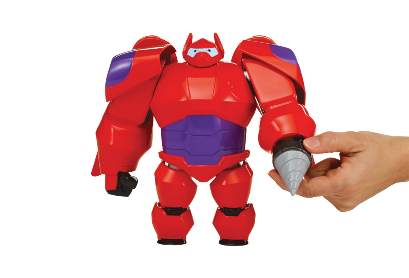 Baymax Deluxe con Hiro. ¡Baymax está de regreso! Este enorme Baymax está listo para volar a la batalla, usando todas sus armas y características de héroe para salvar el día. Al igual que en la serie de Disney XD, se puede transformar de su forma blanca de Nursebot a su forma de héroe, para luchar contra el crimen. Incluye una figura de Hiro.