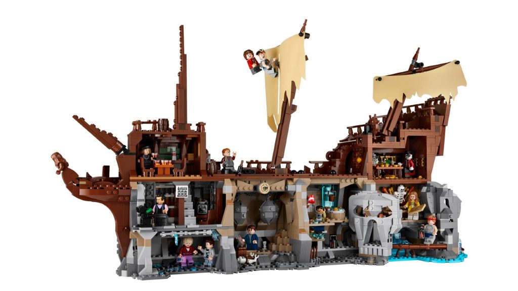 Los constructores pueden dejar caer rocas y activar trampillas con la llave maestra de huesos de cobre y tocar el órgano esqueleto, ¡sin tocar la nota equivocada! El set está repleto de detalles nostálgicos para los fanáticos de Los Goonies, con accesorios que incluyen el cinturón de herramientas de Data y el cepillo para el cabello de Mouth. Incluso hay un guiño a la legendaria escena eliminada del pulpo, así como el atrevido deslizamiento del mástil de Sloth en la cubierta del Inferno.