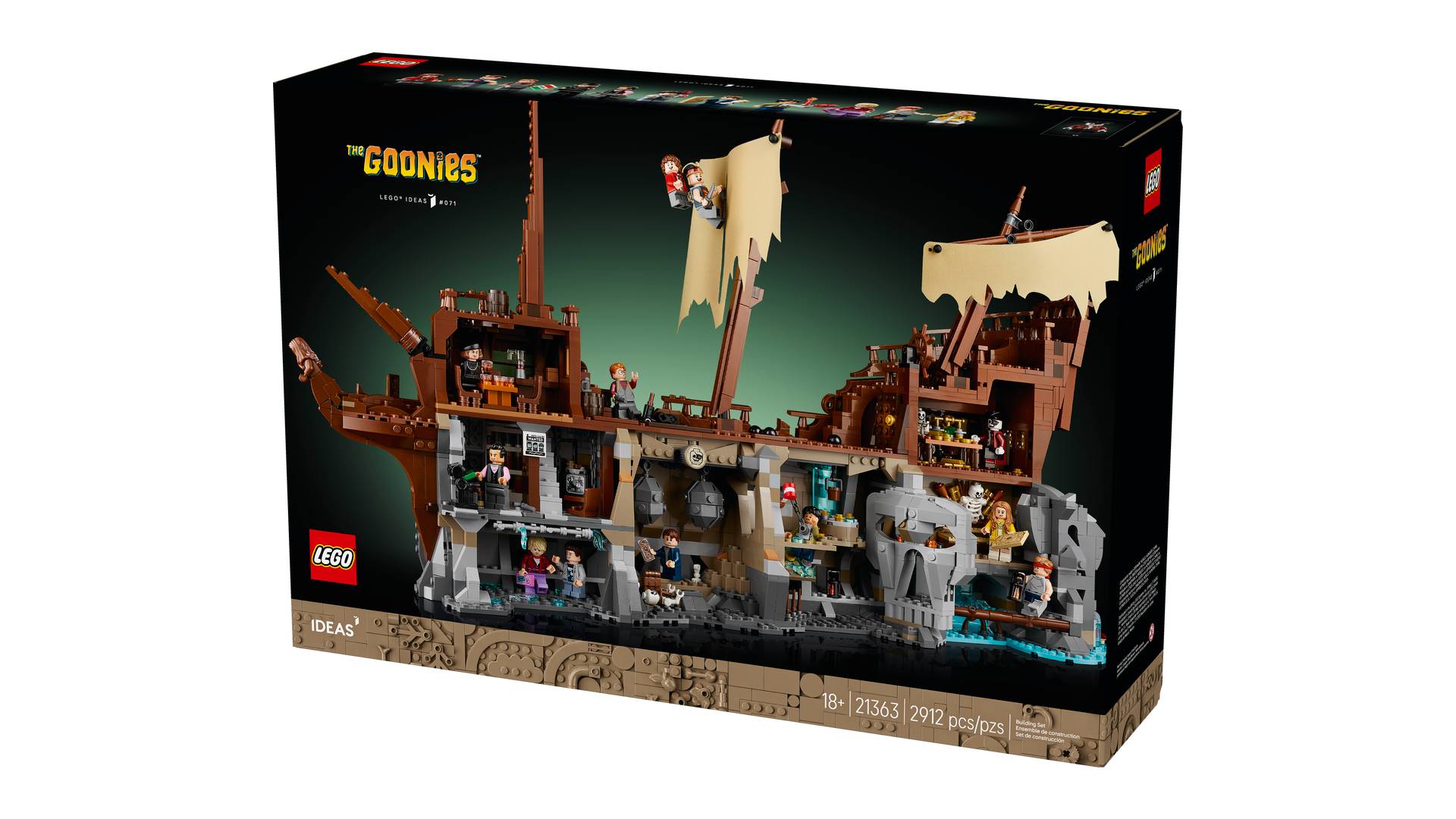 Conoce el LEGO Ideas Los Goonies, un modelo de diorama de 2,912 piezas que invita a los fanáticos adultos a revivir la última búsqueda del tesoro subterráneo ¡en forma de bricks! Este set coleccionable presenta recreaciones de escenas memorables construidas con bricks de LEGO, desde el escondite y las cuevas de los Fratellis, hasta la legendaria sala del tesoro de Willy el Tuerto. ¡Incluso puedes voltear el modelo para revelar los inquietantes restos del barco pirata Inferno! Materializa la aventura con doce minifiguras de personajes clave de la cinta, incluidos Mikey, Mouth, Chunk, Andy y, por supuesto, Data. Se diseñaron elementos completamente nuevos para el sombrero y el pañuelo de pirata de Sloth, y el cabello y la boina de Mama Fratelli.